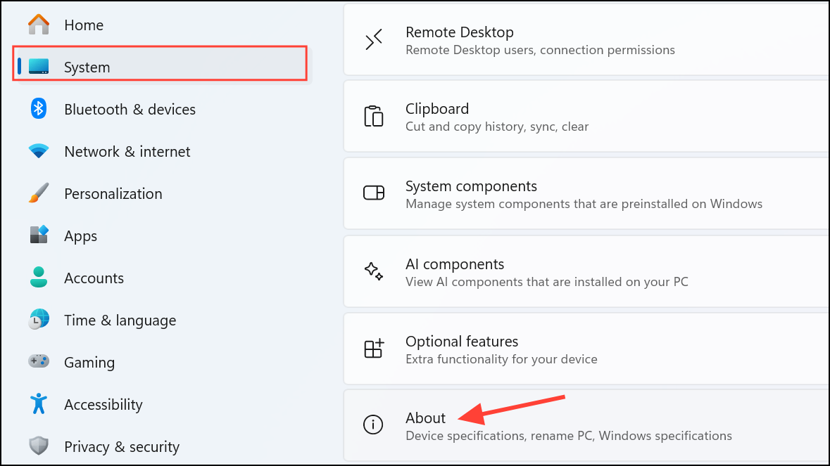Step 1: Press Windows + I to open Settings. Go to System > About.