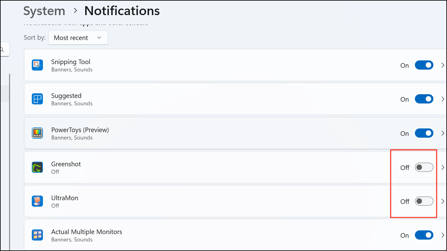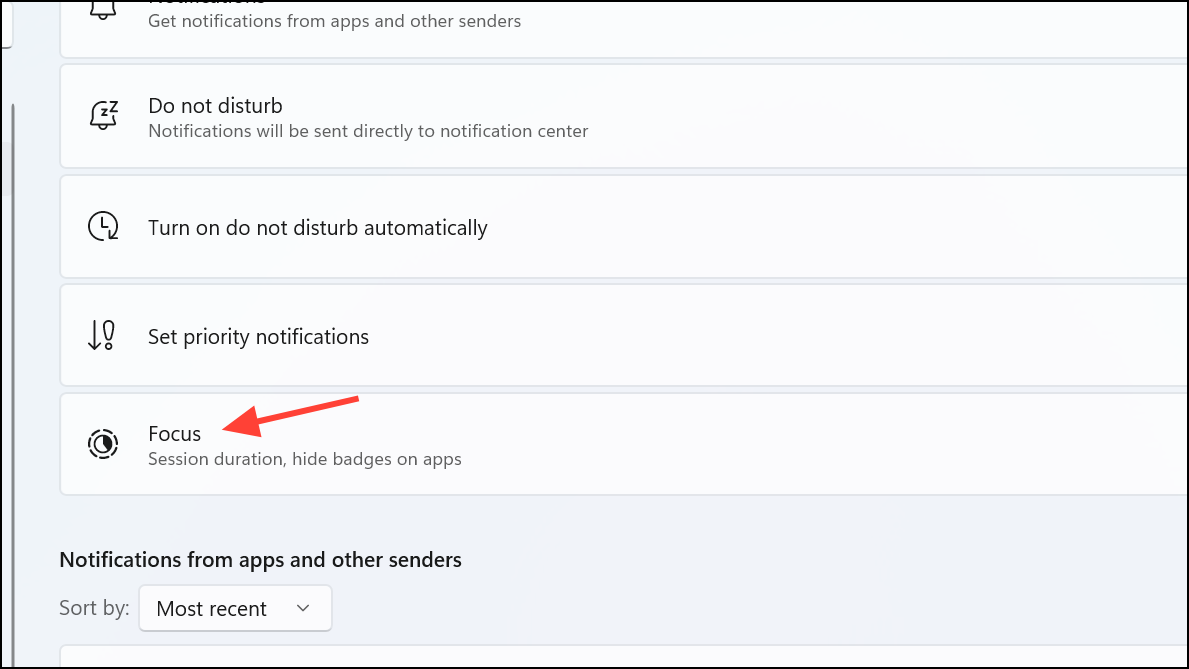 Step 2: Scroll down to the Notifications from apps and other senders section and turn off notifications for non-essential apps by toggling their switches. This limits pop-ups and keeps your attention on important tasks.