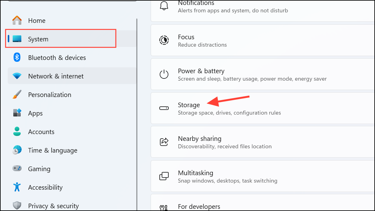 Step 1: Open Settings and go to System > Storage.