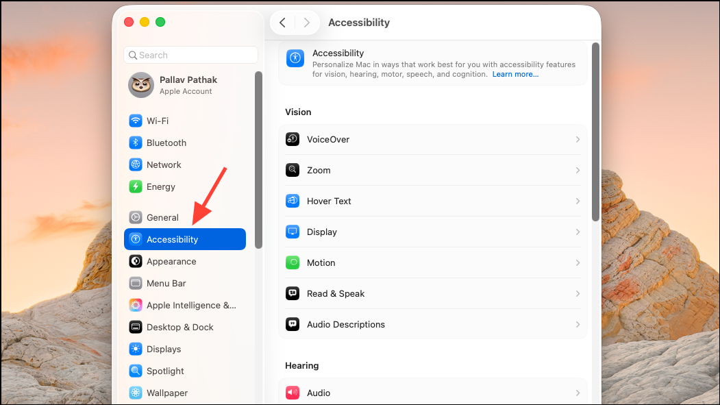 Step 2: Scroll to the Accessibility section in System Settings. If you plan to use Real-Time Text (RTT) features for accessibility, select RTT and enable the relevant options. While RTT is primarily for text communication over calls, it sits alongside the new translation features and may appear as an additional option if your iPhone and Mac are set up for Wi-Fi calling.