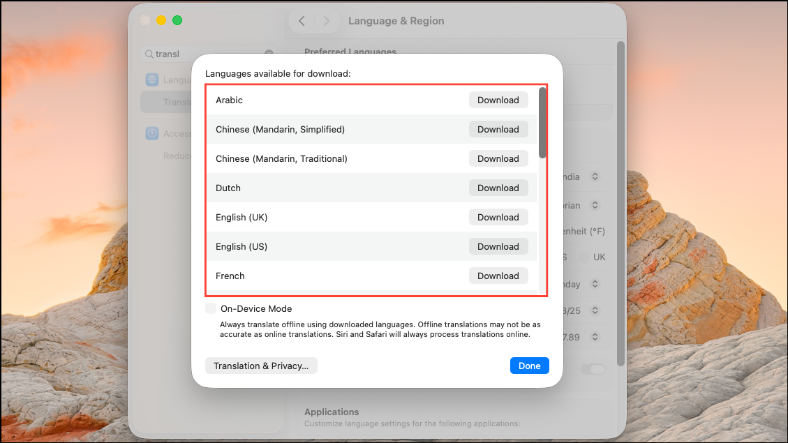 Step 3: Download language packs for offline translation. In System Settings, search for Translation Languages. Download the languages you’ll need, which allows the system to perform translation even without an internet connection. This step ensures the fastest, most private translation experience, as all processing stays on your Mac.