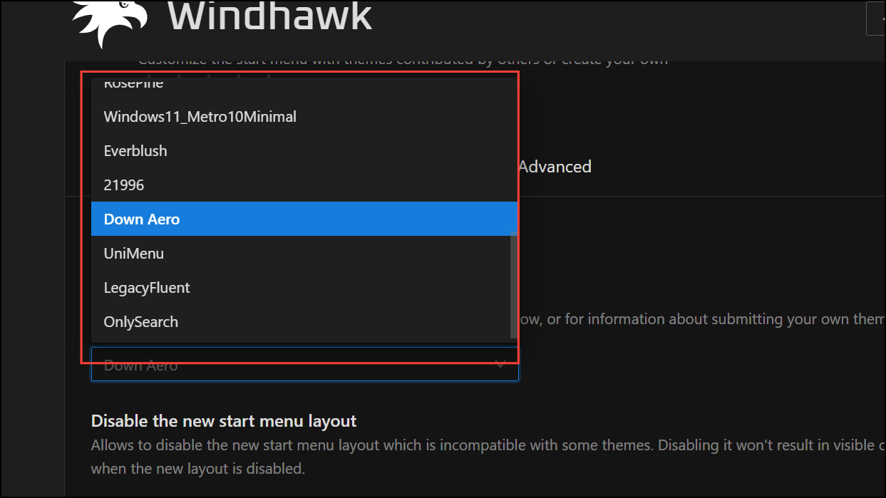 Step 3: Open the Start Menu Styler settings within Windhawk. Choose from available themes or create your own. You can adjust background colors, menu width, transparency, and other visual elements. Advanced users can use the provided configuration interface or edit style properties directly for precise control.