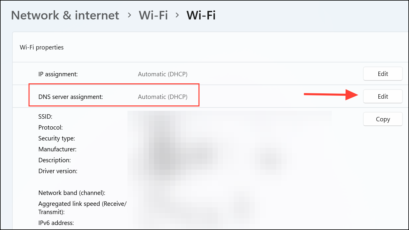 Automatic (DHCP)in theDNS server assignmentsection, then save. - Forget and reconnect to problematic Wi-Fi networks in