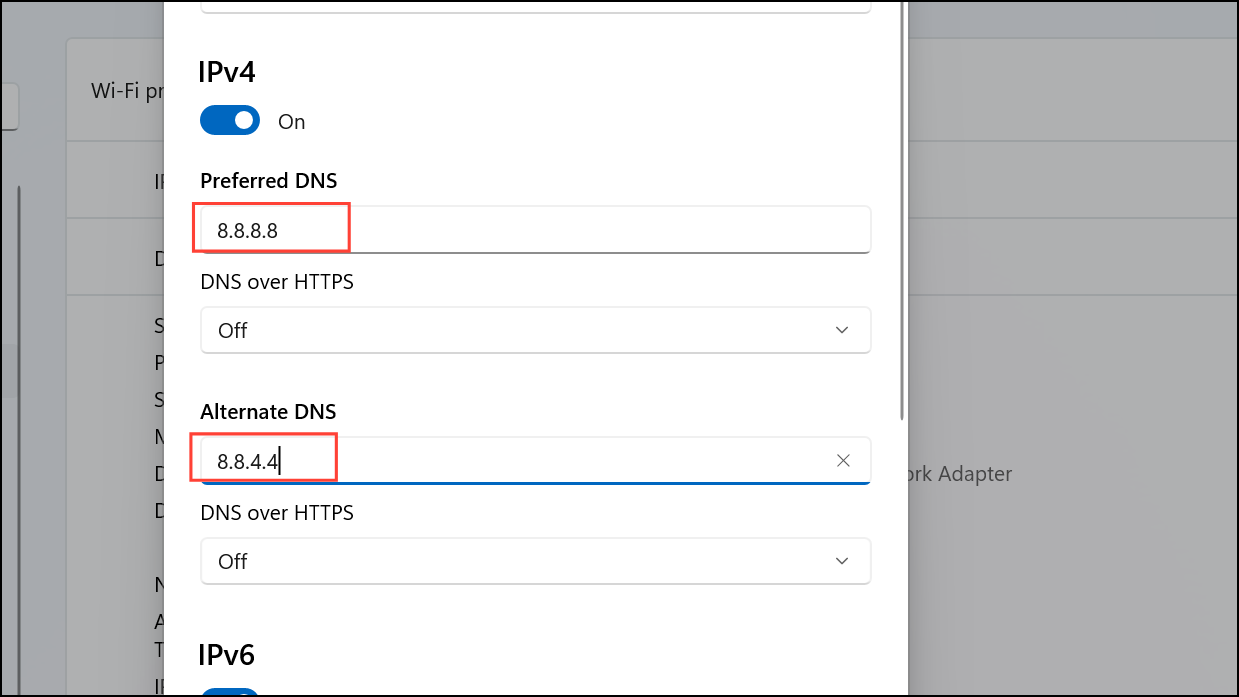 - If using public DNS (like Google or Cloudflare), ensure the addresses are typed correctly and that you save changes after editing.