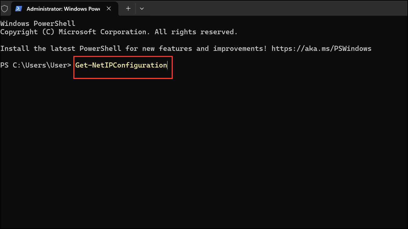 Step 2: At the PowerShell prompt, type the following command to list your network interfaces and find the correct InterfaceIndex: