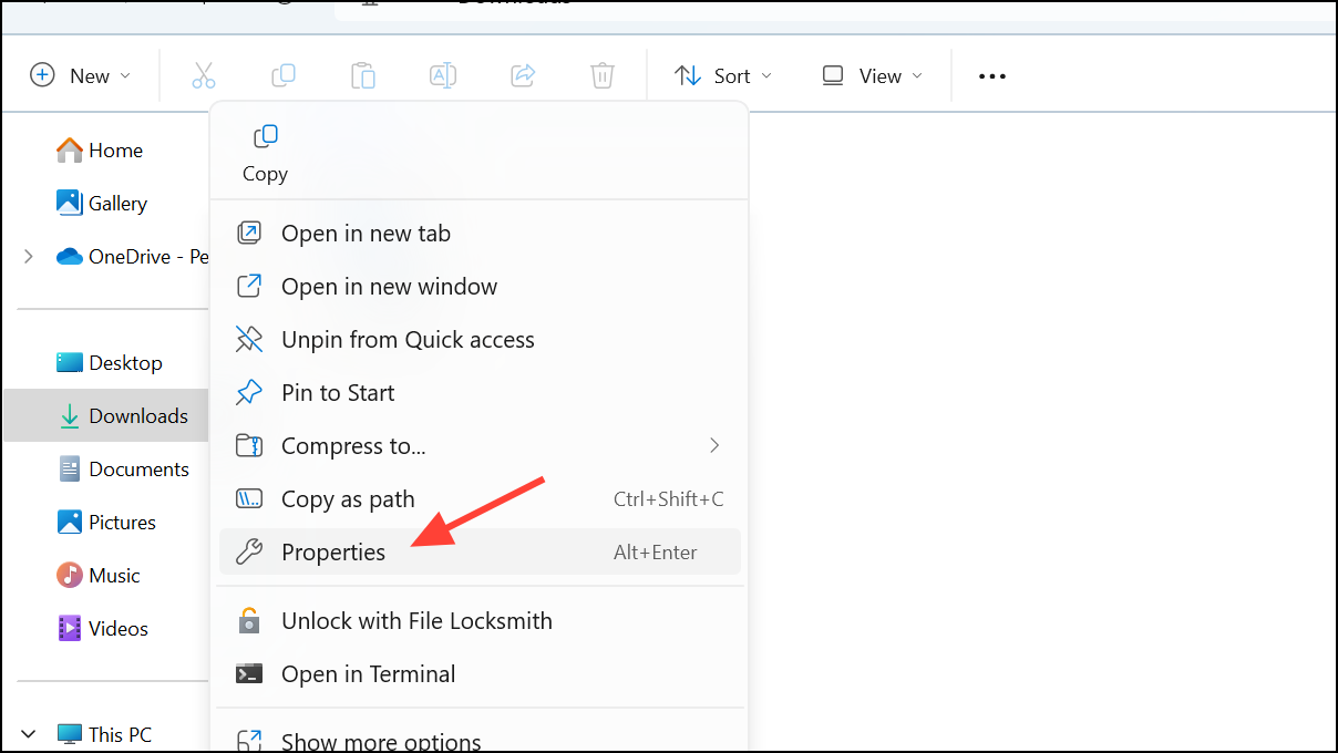 Step 2: Right-click on a folder such as Downloads, Documents, or Pictures, and select Properties.