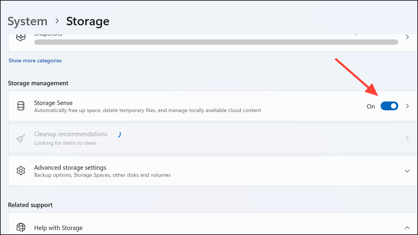 Step 3: Toggle on the switch for Storage Sense.