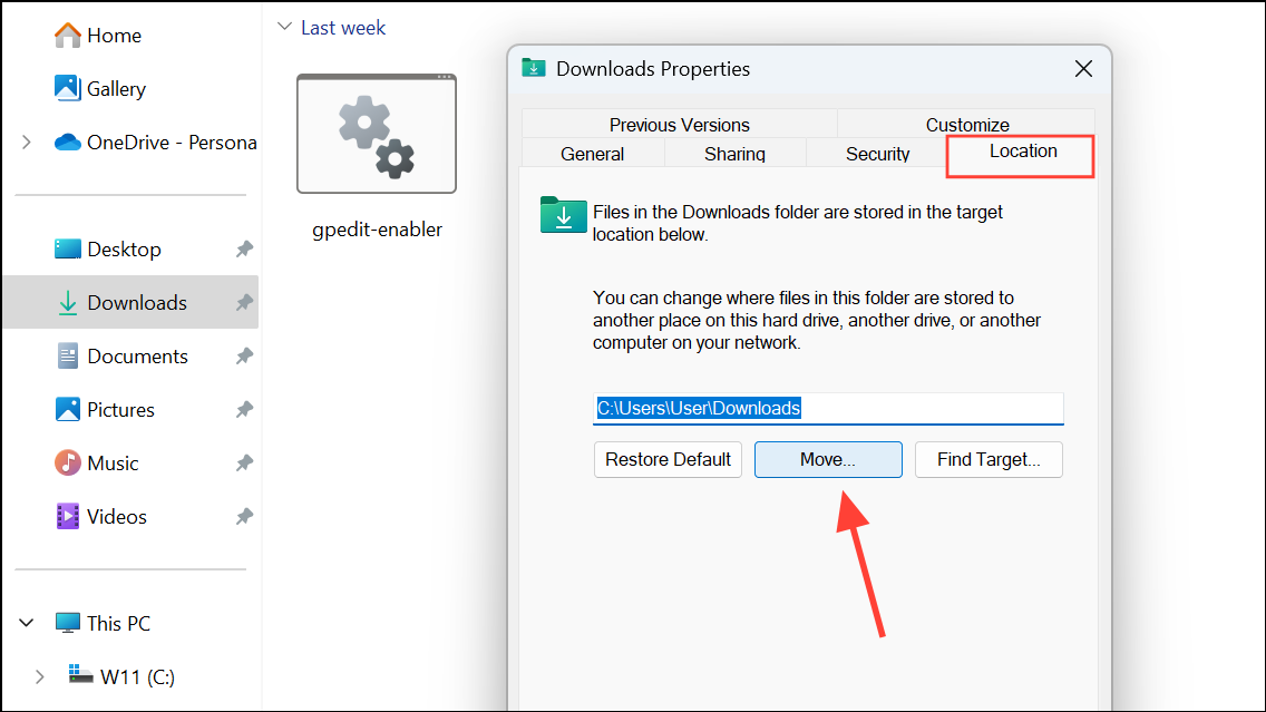 Step 3: Go to the Location tab and click Move.