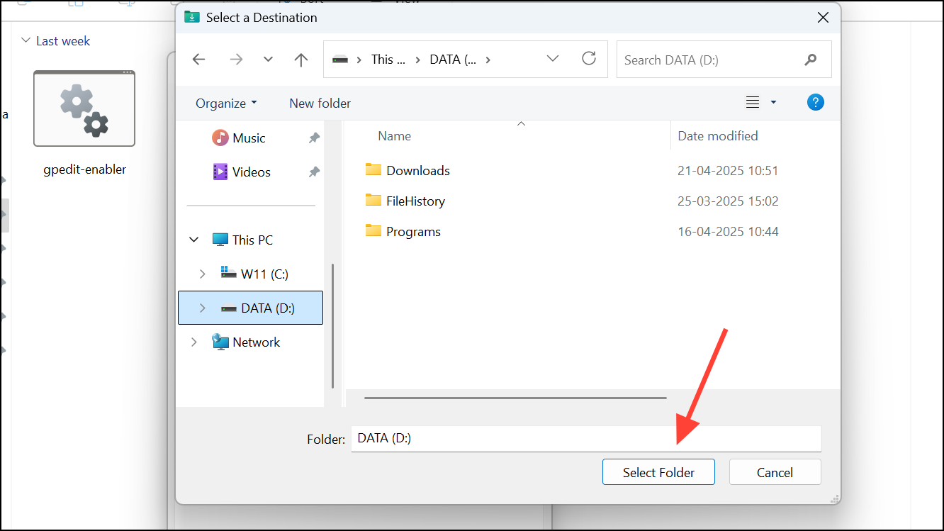 Step 4: Choose a folder on a different drive with sufficient space, then click Select Folder and apply the changes. When prompted, allow Windows to move existing files to the new location.