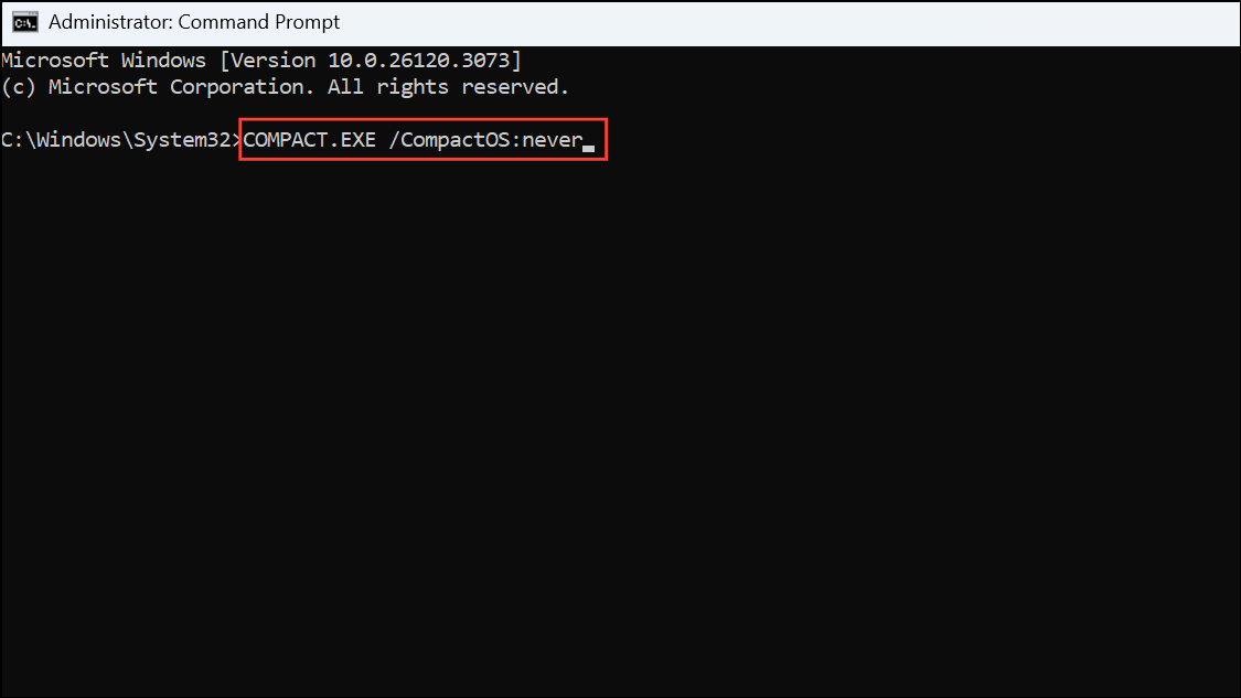COMPACT.EXE /CompactOS:never