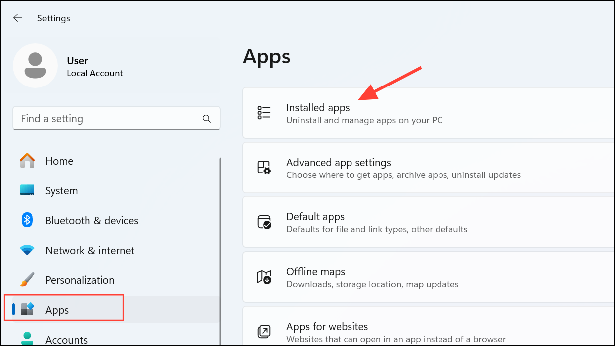 Step 1: Go to Settings > Apps > Installed Apps.
