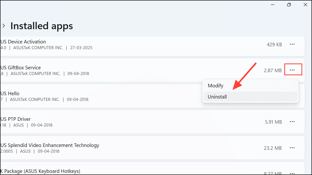 Step 2: Review the list and click the three-dot menu next to apps you no longer need, then select Uninstall.