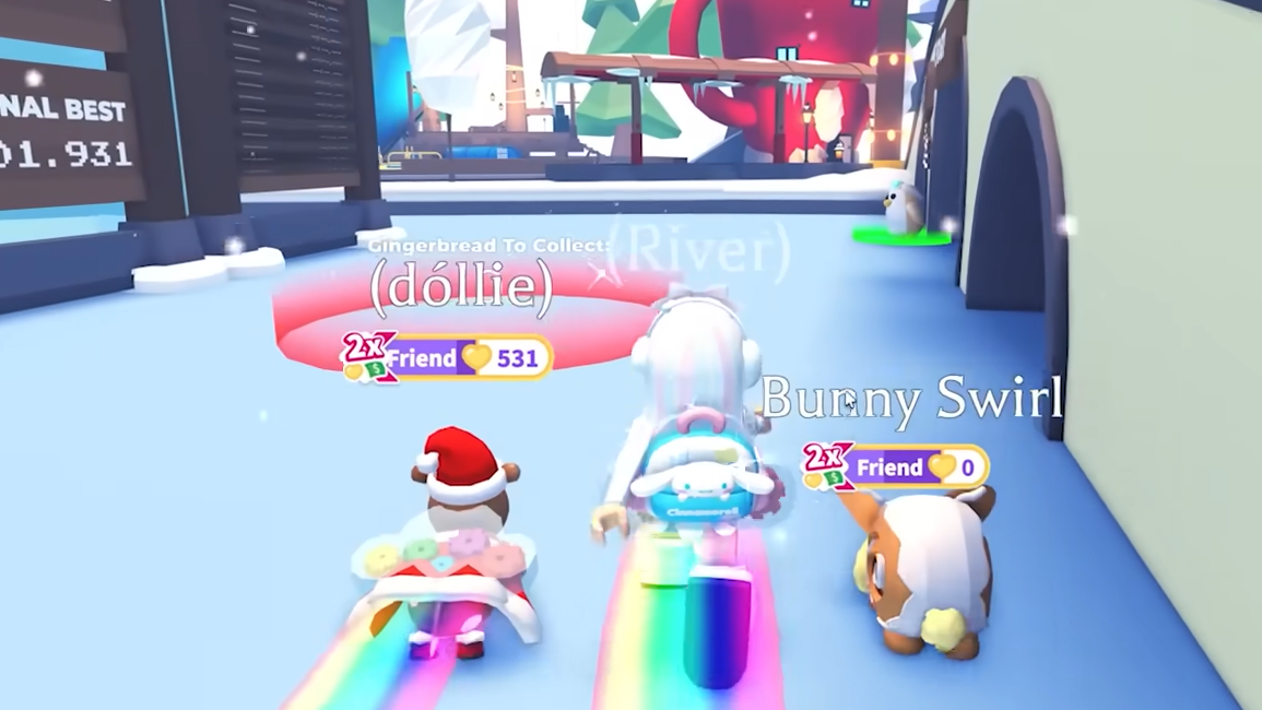 Penguins move across the ice and slow you if you bump them. They’re mostly a tempo tax, but they matter if you’re trying to squeeze in several runs per play session. Speedy the Penguin offers timed races; your first completion awards 500 Gingerbread.
