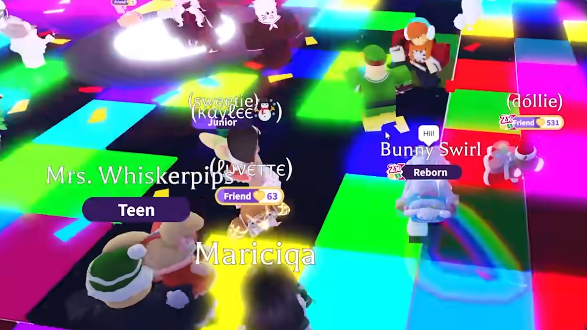 Every time a player touches a star, it upgrades one tier (silver to purple, purple to gold). When a gold star is collected, it flies to the central tree as a decoration, giving you a visual sense of team progress. Pets you bring into Starry Bounce earn bonus XP for each star you help catch, which makes this minigame one of the better passive leveling tools for anyone grinding neons or mega neons during the event.