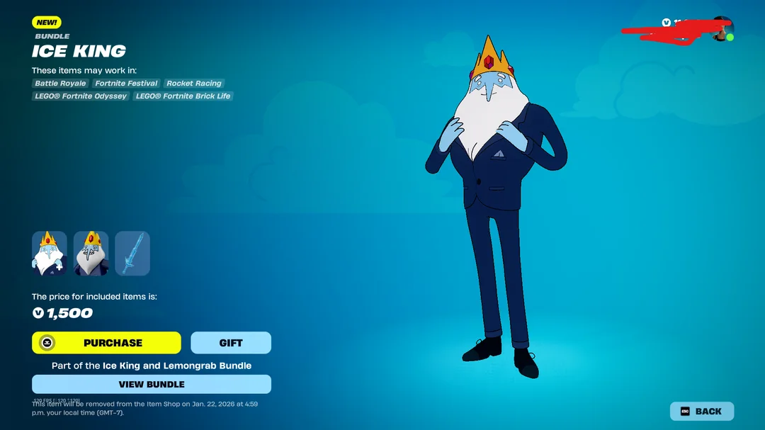 Both the Fionna and Cake Bundle and the Ice King and Lemongrab Bundle are scheduled to leave the Fortnite Item Shop on January 22, 2026 at 7 PM ET. After that point, the Wave 2 skins and their matching cosmetics will rotate out and will no longer be purchasable until Epic brings them back in a future shop lineup.