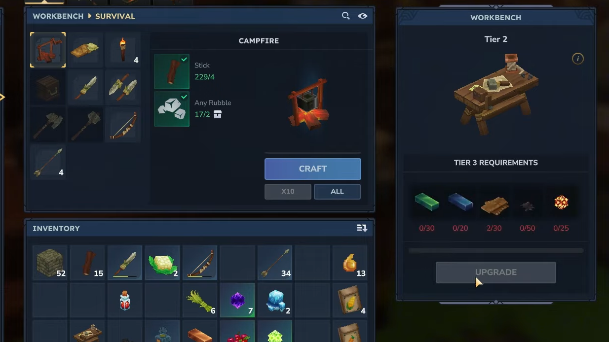 Some descriptions present the Builder’s Workbench as the first specialized bench you should craft. It uses 6 Tree Trunks and 3 Stones and then serves as the station where you create other workbenches, including the Alchemist’s Workbench. In practice, the flow is the same conceptually: build your basic crafting infrastructure, then expand into specialist benches once you have enough early-game materials.