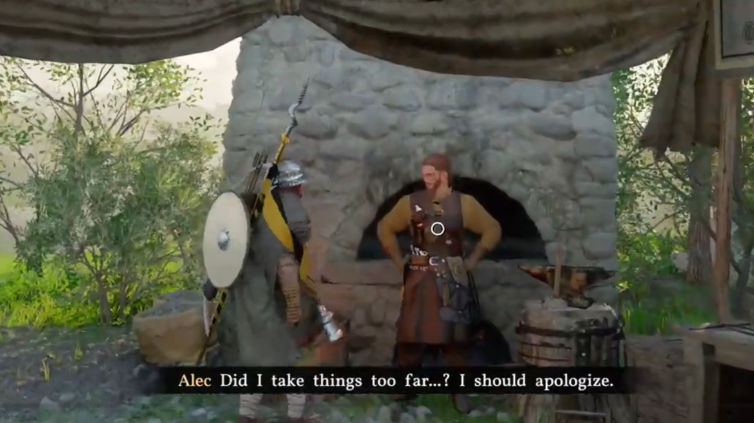 Step 2: Return to the Greymane camp and approach Alec. He is standing under a tent near the center of the camp.