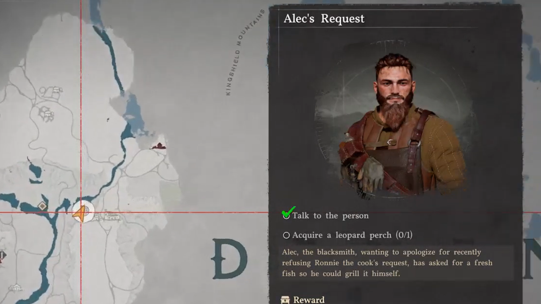 Alec's Request is an early faction quest in Crimson Desert that asks you to bring a Leopard Perch to Alec at the Greymane camp. The quest is straightforward, but many players struggle with the fishing mechanic or assume they need a fishing pole. You can skip the pole entirely and catch the fish by hand in shallow water.