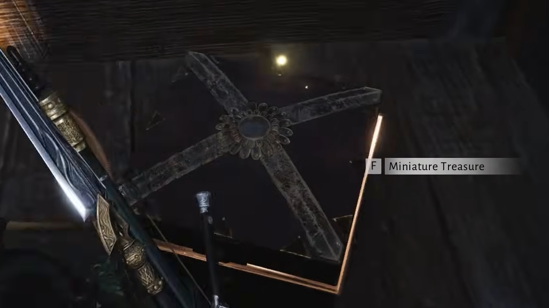 After reading the signpost, open the emote wheel and select the matching action. Performing it triggers a small cloud of smoke, and the hidden Miniature Treasure chest appears nearby. If you skip the signpost and try to use the emote without reading it first, the chest may not spawn. Always check for interactable objects in the immediate area before moving on.
