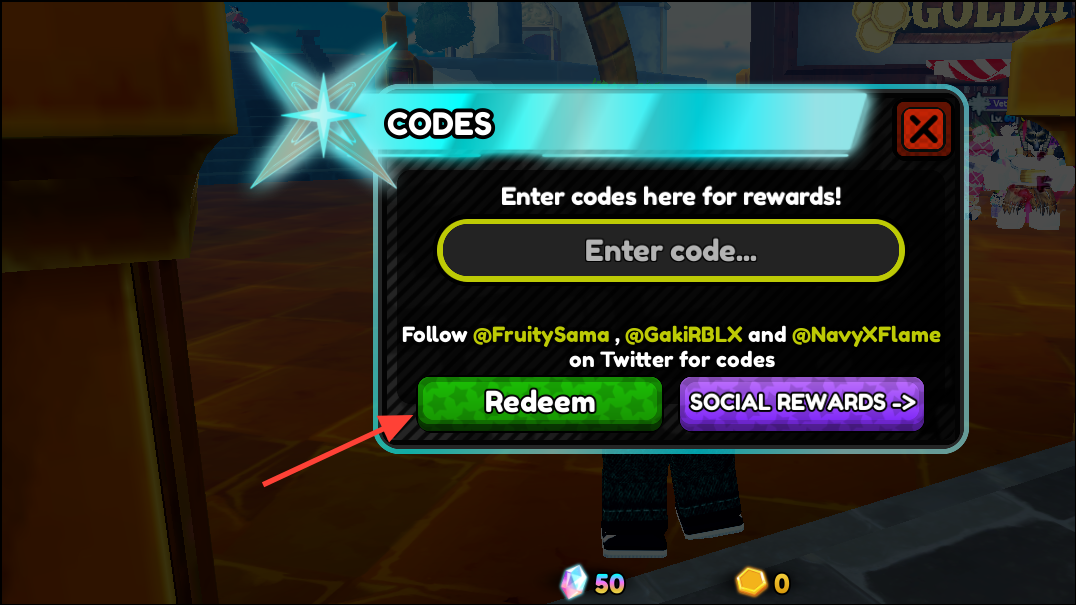 Step 4: If you see “invalid,” rejoin on a new/private server and try again. Some codes require Level 2+ to claim.