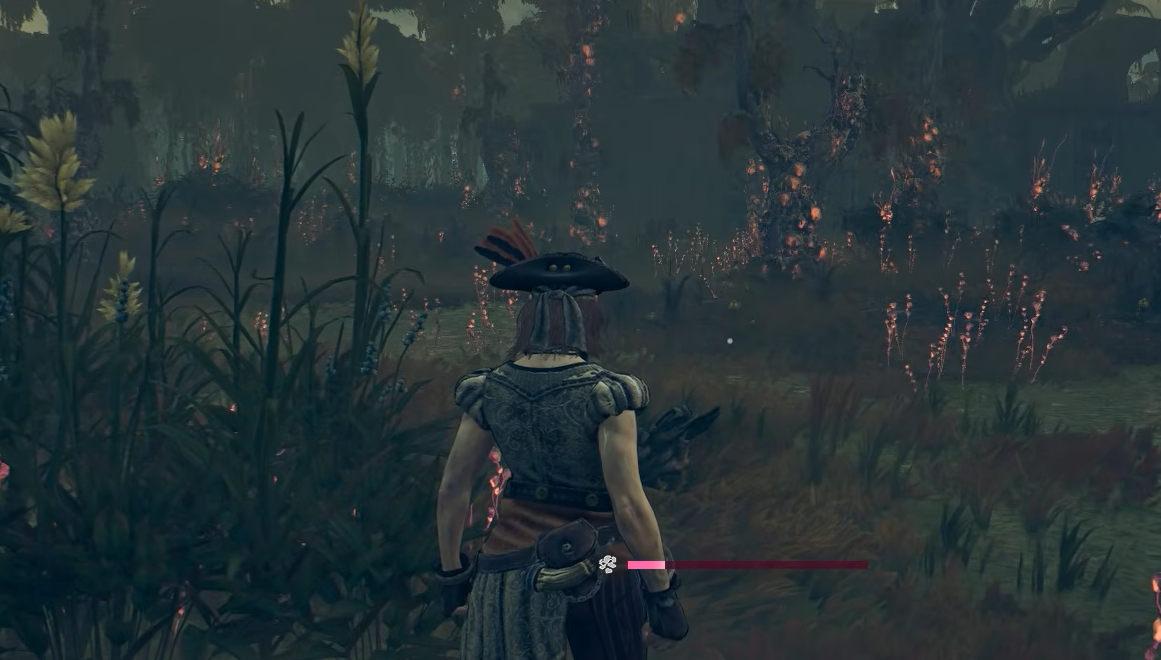 The Tainted Forest is identifiable by trees coated in orange, bulbous growths. The moment you cross into one of these zones, the Wood Plague gauge starts climbing on its own, and a full meter results in an instant kill.