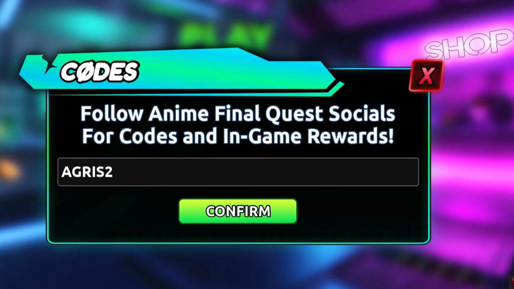 Step 4: Copy a code from the list above and paste it into the text box. Click "Confirm" to claim your rewards.