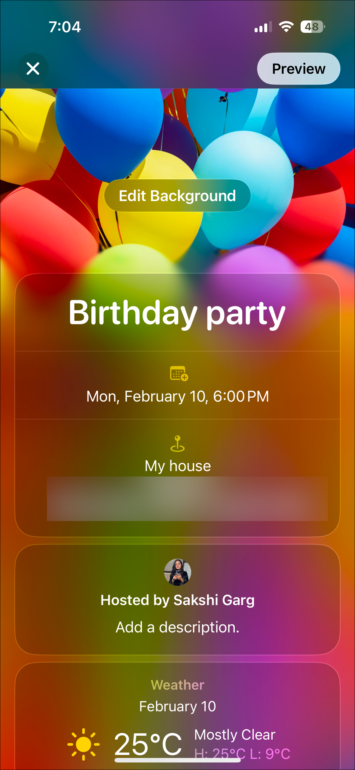 You can also add backgrounds to the invites, choosing from pre-made templates from Apple or your own photos. If your phone supports Apple Intelligence, you can even create a background using the Image Playground app.