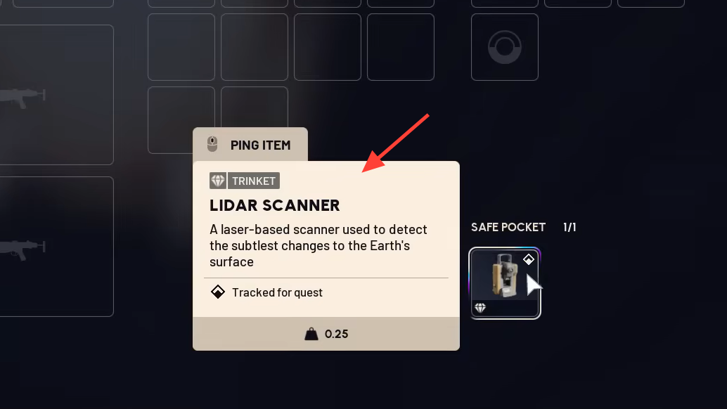 Equip the LIDAR Scanner once it’s in your inventory. This helps ensure it’s tracked properly through extraction.