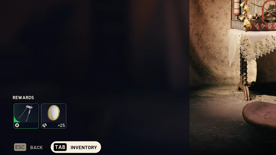 | 4. Heightened Alert Birds | 2x Vaporizer Regulator, 3x Water Filter, 8x Agave, 5x "Sirena Dorata" Ship Model | Gel Patches (face style), Riven Tides Hotel Keycard No. 311, 50 Raider Tokens |