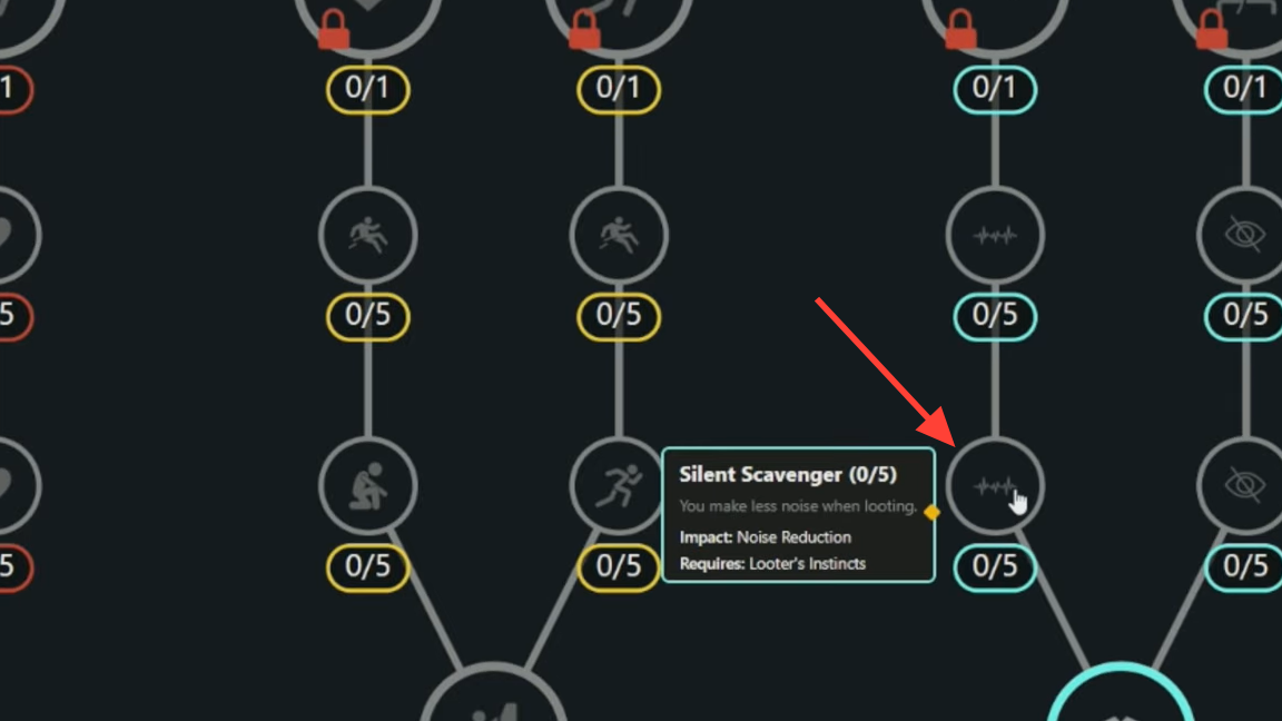 - Silent Scavenger (Survival): Lowers the noise of looting to avoid drawing nearby players.