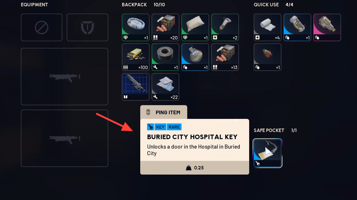 - Store the key in Safe Pockets before pushing objectives.