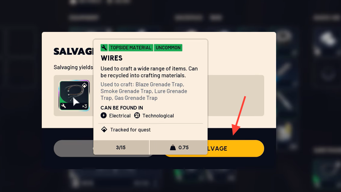 If you run out of space, don’t drop items outright. Salvage extras to convert them into basic materials. It’s less profitable than selling or full recycling, but it frees space without wasting value and keeps you out longer, which means more coins per extraction.