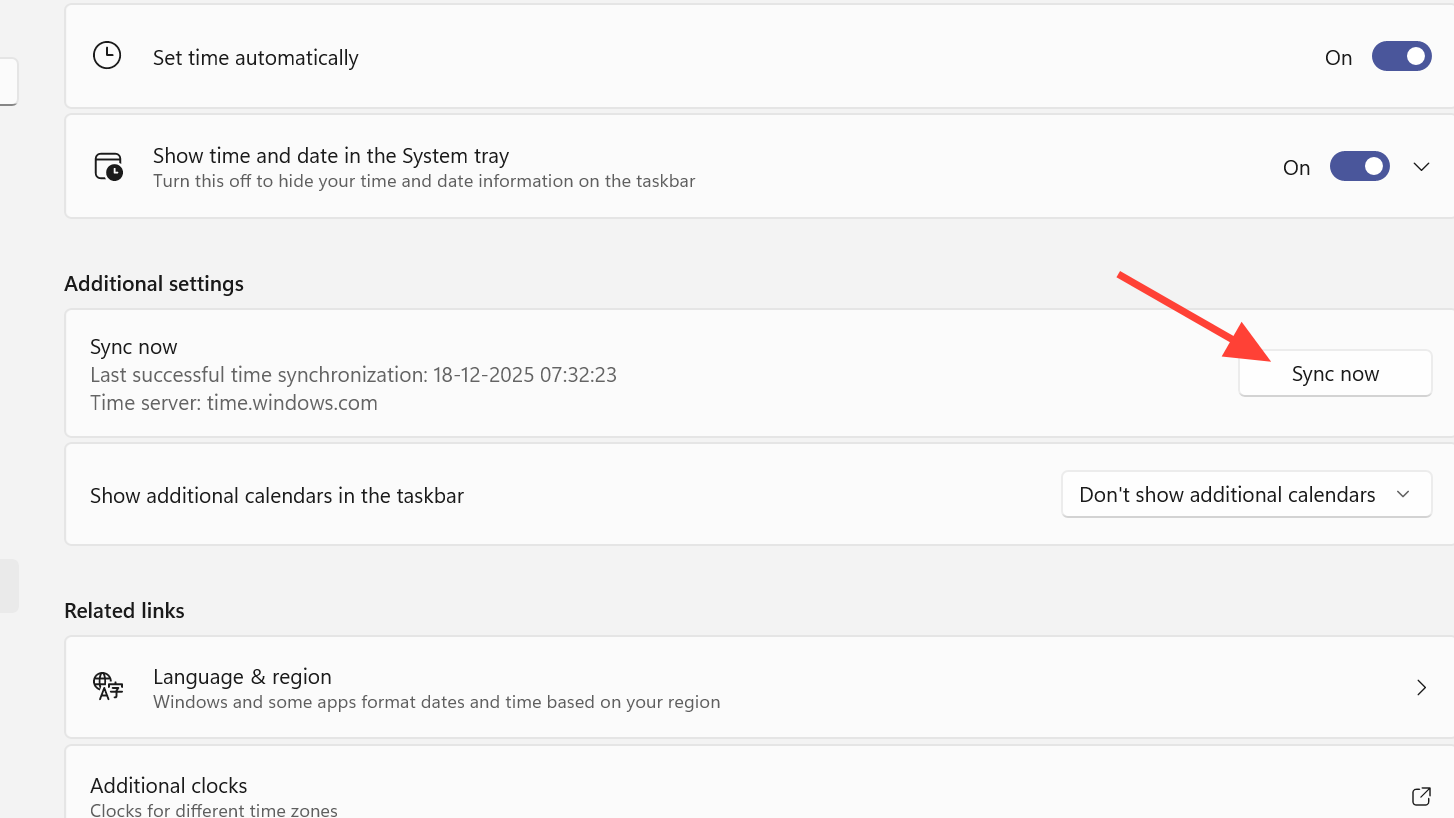 Step 2: Make sure the time zone matches your actual region. Use the option to sync time with the internet and let Windows correct the clock.