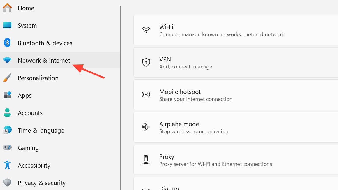 Step 1: Open Settings, then go to Network & Internet and select Status or the equivalent overview page.