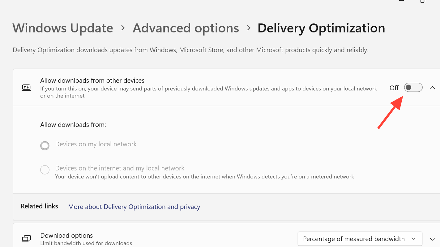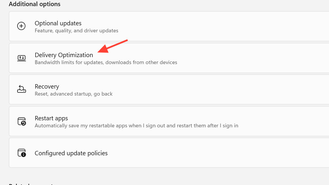 Step 2: Go to Windows Update, then Advanced options, and open Delivery Optimization.