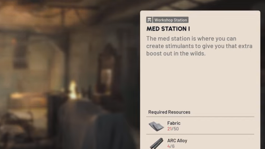 Access the Workshop from the lobby menu between raids. You start with a basic setup and add specialized benches to unlock new recipes. If you want to make weapons, you need the Gunsmith. If you want field meds and shield tools, you need the Medical Lab. Each bench upgrades through three tiers, and higher levels unlock stronger weapons, larger shields, and more advanced items.