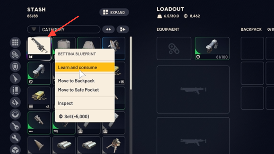 Blueprints are recipes you learn once and use forever. Find one, extract with it, and use the “learn and consume” action in Speranza to add the item to your crafting list. Duplicates are worth carrying out—common weapon blueprints sell for about 5,000 coins each after you’ve learned them.