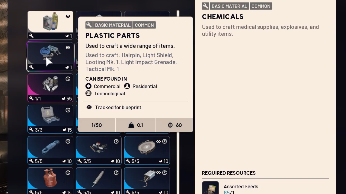 | Foundation (1/6) | Base structure and frame | 150 Metal Parts, 200 Rubber Parts, 80 ARC Alloy, 15 Steel Spring |