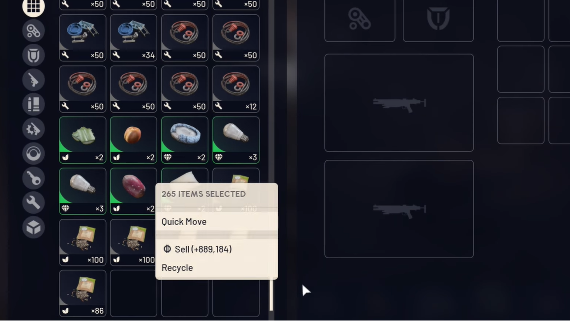 Step 2: On PC, hold Ctrl and click items to multi‑select; on console, hold the left trigger and tap the select button. Select every item in your stash. This can be tedious if you’re near the 280‑slot cap.