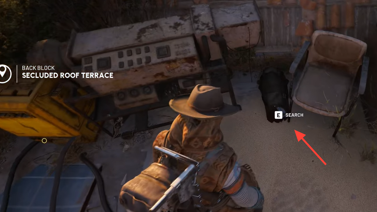 The objective text points you toward a secluded terrace located southwest of the map’s southern area. The game won’t draw a perfect GPS line; expect a broad search radius. Use the following approach to zero in efficiently: