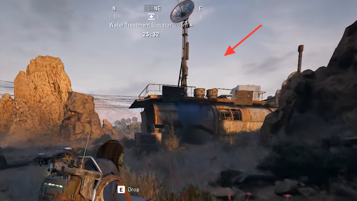 Open your map after you spawn, choose the closest depot from the list above, and head there. Climb to the roof and interact with the radar dish to repair it. The channel takes a few seconds and leaves you exposed, so clear nearby threats first or post a lookout.
