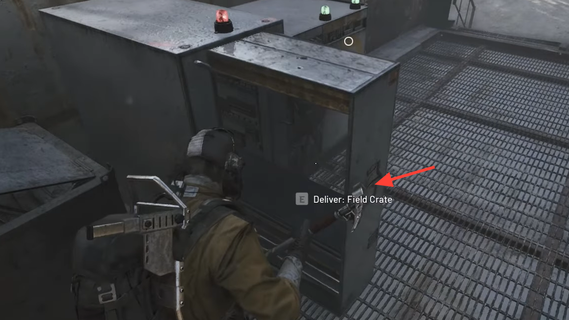 Outside of Off the Radar, the rooftop radar isn’t interactable. The depot’s real utility starts later: inside, you’ll find a machine that accepts a Field Crate for a loot payout. This becomes the focus of a follow‑up task and is a repeatable activity—find a crate, carry it to the machine, deposit, and get rewards.