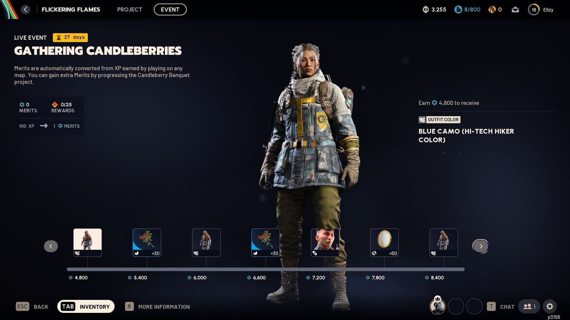 | 8 | Blue Camo (Hi-Tech Hiker Color) | 4800 | Outfit color |