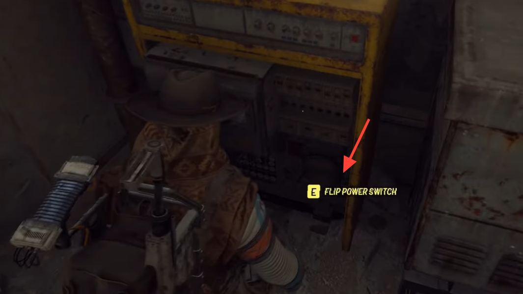 Step 4: Flip the power switch under the stairs to restore power and complete the quest.