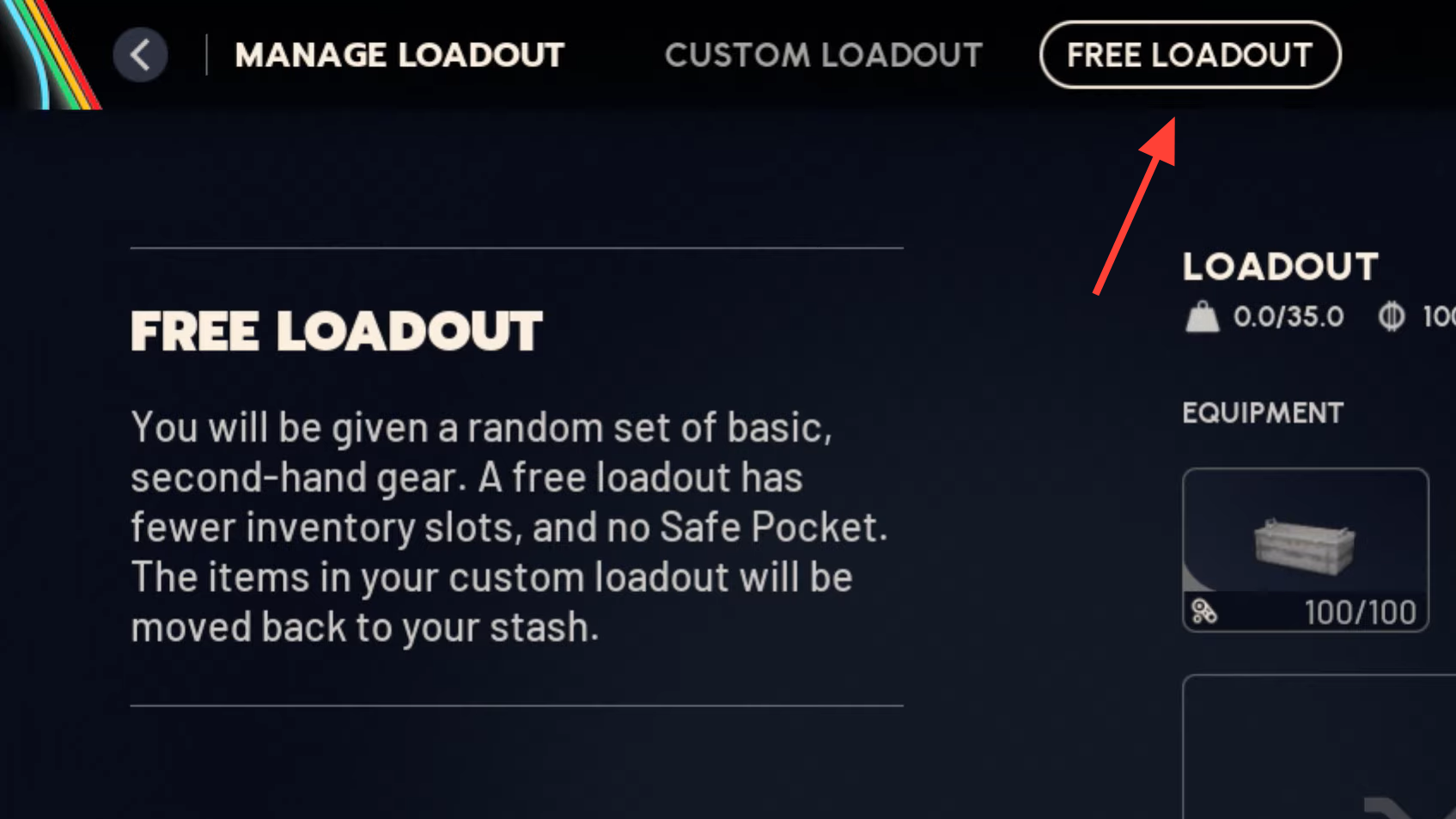 - Forgetting stash space before selecting the Free Loadout tab. Make room first to allow the switch.