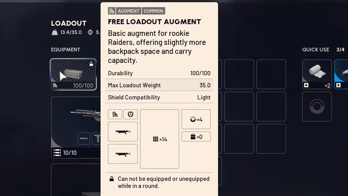 - A Free Loadout Augment with no Safe Pocket slot.