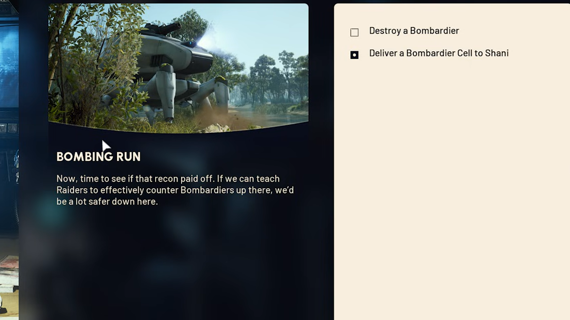 Bombing Run is introduced with the quest description about turning Bombardier recon into practical countermeasures. In gameplay terms, it boils down to two clear tasks: