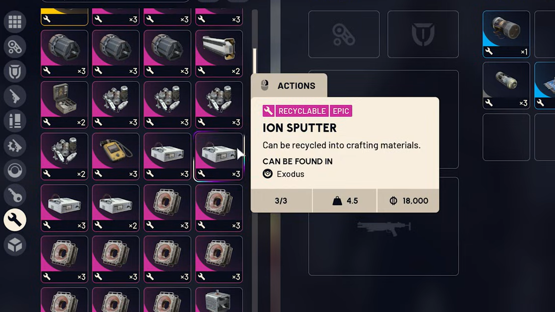 - The moment you find an Ion Sputter, move it into a safe pocket if you have one.
