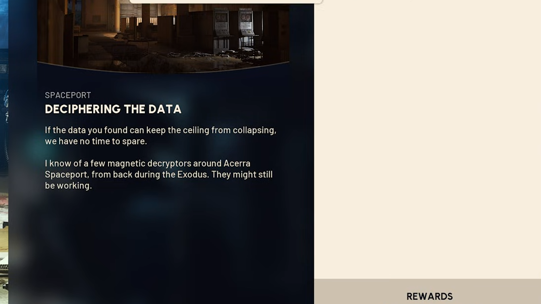 Once you know exactly which consoles to use in Fuel Control and the Arrival Building, “Deciphering the Data” becomes a quick Spaceport errand that slots neatly into other runs. Treat Fuel Control as a short detour on the way to the northwest, watch for Sentries and snipers around the Arrival Building, and the rest is just a matter of finding the one terminal in each room that still has enough life in it to talk to your Magnetic Decryptor.