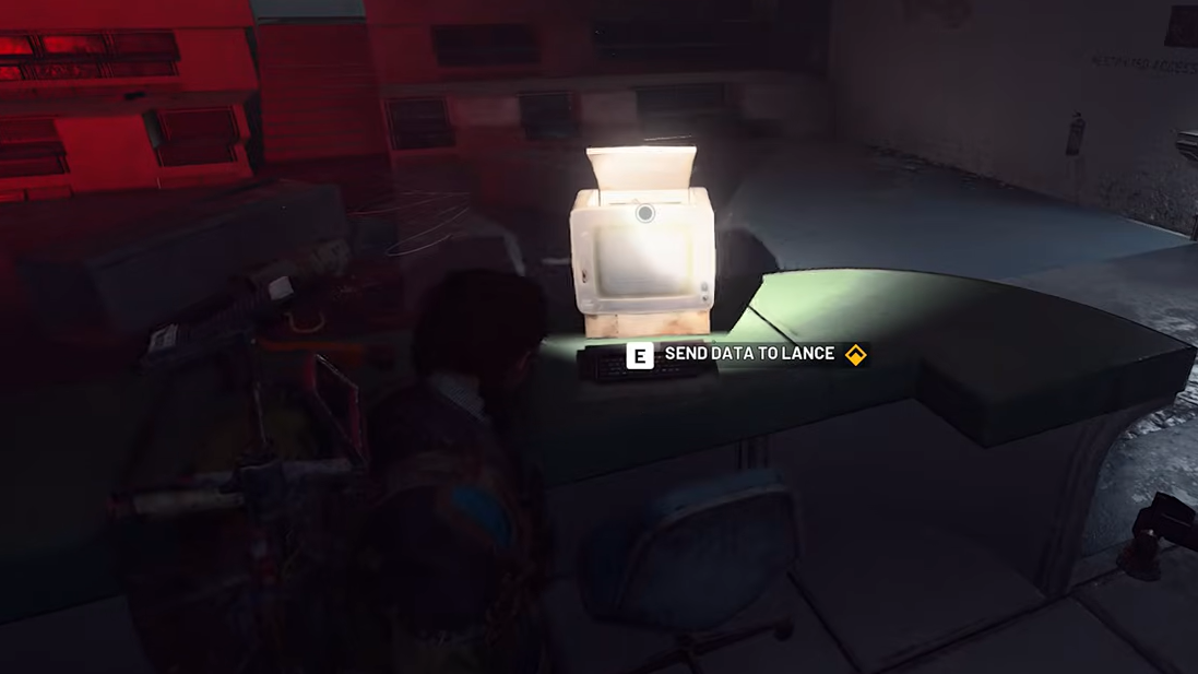 Once you reach the marked spot, interact with the second computer or notes. This uploads the lecture data to Lance and updates the quest to Medical Research.